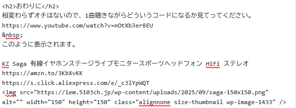 あと記事書くときの作業の軽減。リンク入れて画像入れてそれをタグで囲ってクラスも当てて…とか毎回いちいちやってられません。